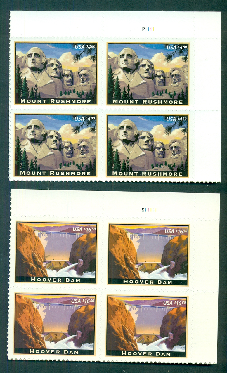 $4.80 Mt Rushmore & $16.50 Hoover Dam, Plate Blocks of 4, NH, face 881.20, $110.00 |