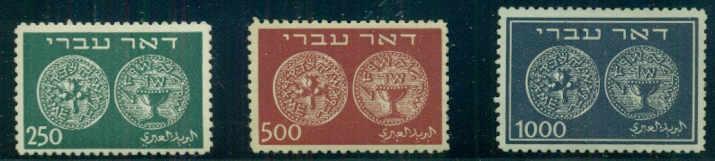 1948 Interim Period, Nahariya locals, Bale #108-110, rouletted on piece, these are difficult to find used, VF, Bale $300.00 |