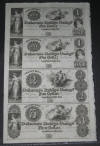City, Catskill July 4, 1823, uncut sheet $10-$5-$2-$1, maid with cornucopia,