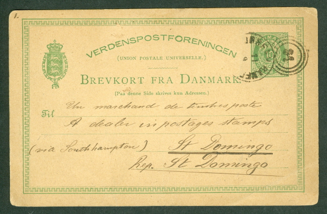 card to DOMINICAN REPUBLIC via London (bkstp), unlisted in Facit