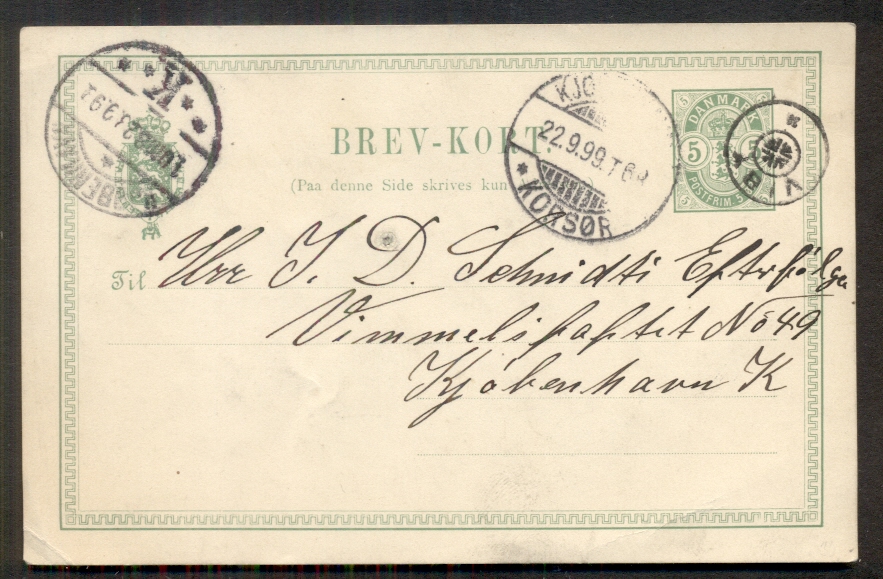 1899, VIBY Star Cancel on 5ore postal card, VF, $24.00 |