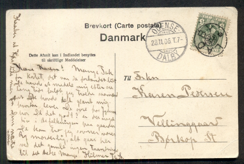 1906, LADBY Star Cancel tying 5ore on picture postcard, bold strike, very scarce, VF, $150.00 |