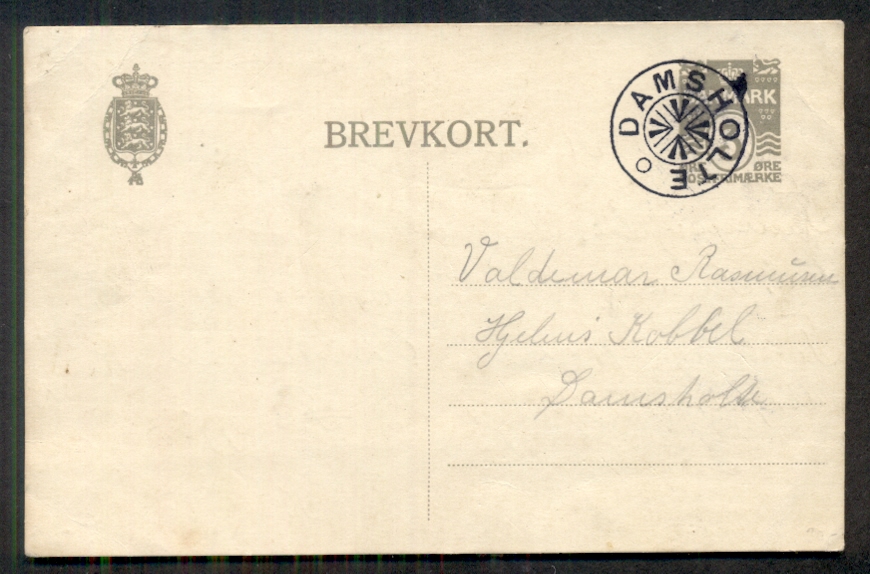(1906) DAMSHOLTE Star Cancel on 3ore postal card, VF, $24.00 |
