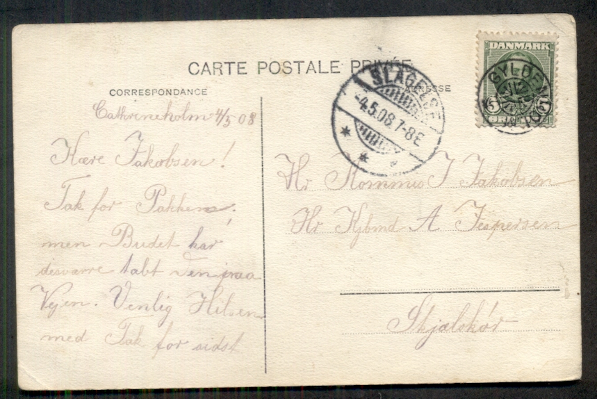 1911, Star Cancel GJORSLEV on postcard, VF, $22.00 |