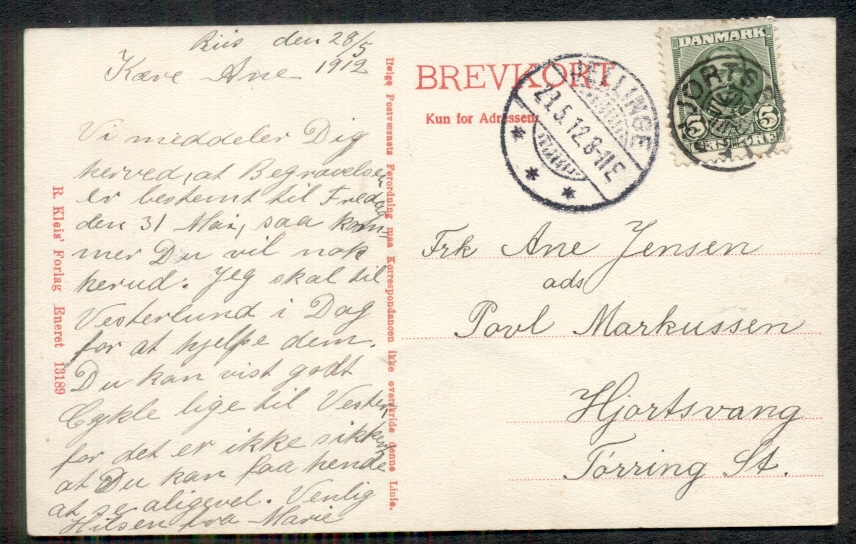 1914, Star Cancel HERSLEV on 5ore card, VF, $20.00 |