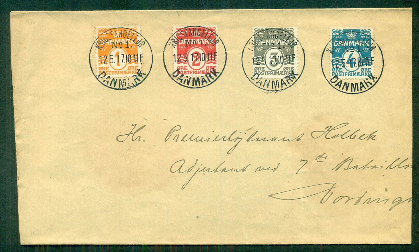 1907/1912, 3 diff cards with straight line Fra Ronne, Fra Kjobenhavn and Fra Bornholm strikes, VF, $55.00 |