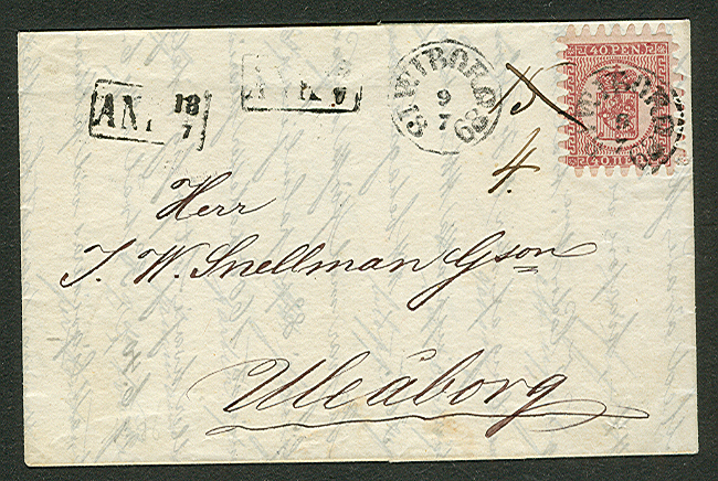 Uleaborg transit cancel, VF+, Facit $630.00, $350.00 |