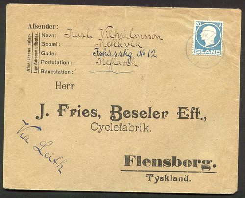 VIII (Scott 94) tied Reykjavik to Germany w/ms “Via Leith”, very nice
