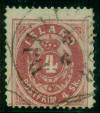 2 (2v1) 4sk carmine, used, INVERTED WATERMARK, trivial thin speck, quite scarce, Scott $900.00 + Facit places a 78% premium for inv. Wmk = $1,495.00, $350.00 |