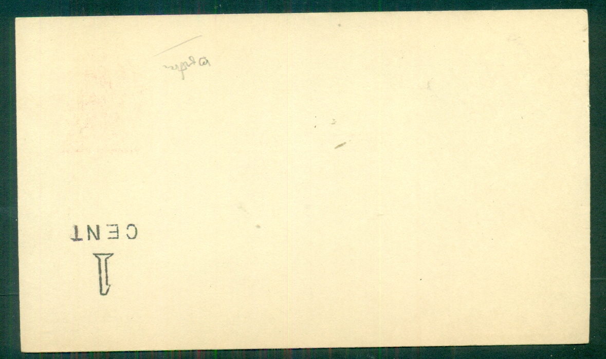 (Brazer) 1¢ card PROOF, small wmk, bb matrix, note on reverse says ‘purchased from Brazer in 1940”, VF, $150.00 |