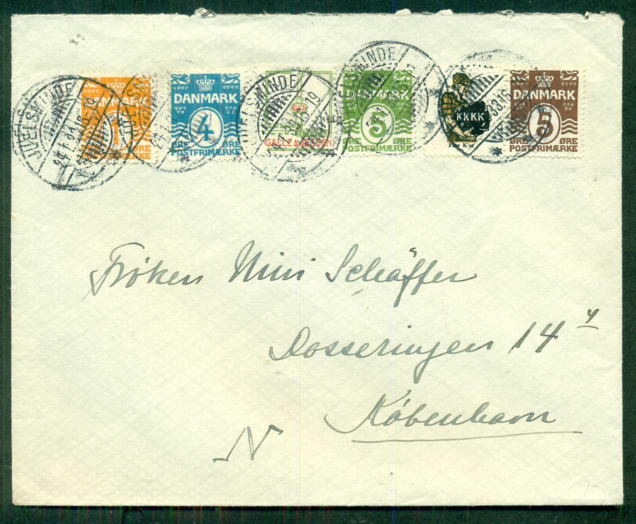 Advertising cover 5ore KKKK + 5ore Galle & Jessen (RE33,44) tied, VF, $40.00 |