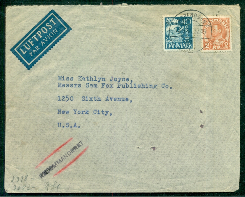 1944, Mute Star DAMSHOLTE multi strikes on cover to U.S., VF, $20.00 |