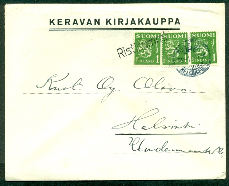 Village cancel RISTINUMMI ties 1mk stamps to local cover, VF, $20.00 |