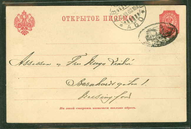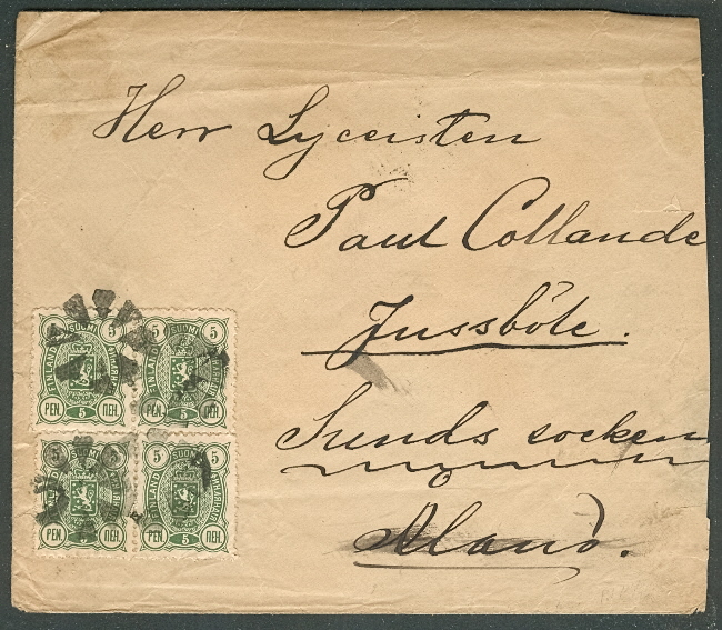 from ALAND to Helsingfors w/Ship – on – Oval cancel and Abo transit,