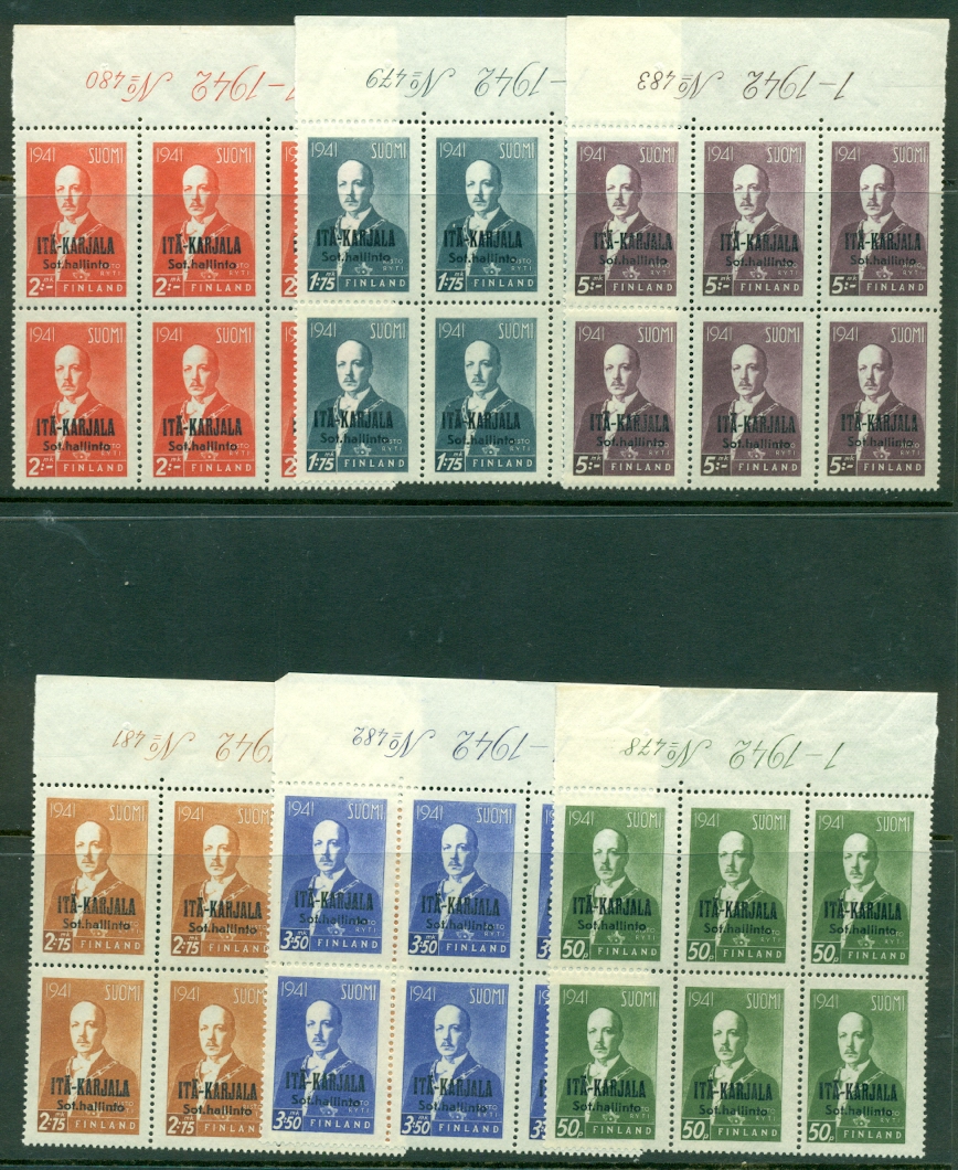 (16-21) Complete set Ryti in Plate No. Blocks of 6, og, NH, VF, Scott