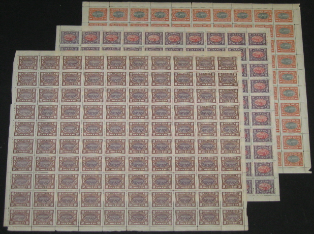 NORTH INGERMANLAND, 12-14 (12-14), 1mk-10mk hi values in COMPLETE SHEETS OF 100, og, NH, very rare for sheets to still exist, as singles Facit retail