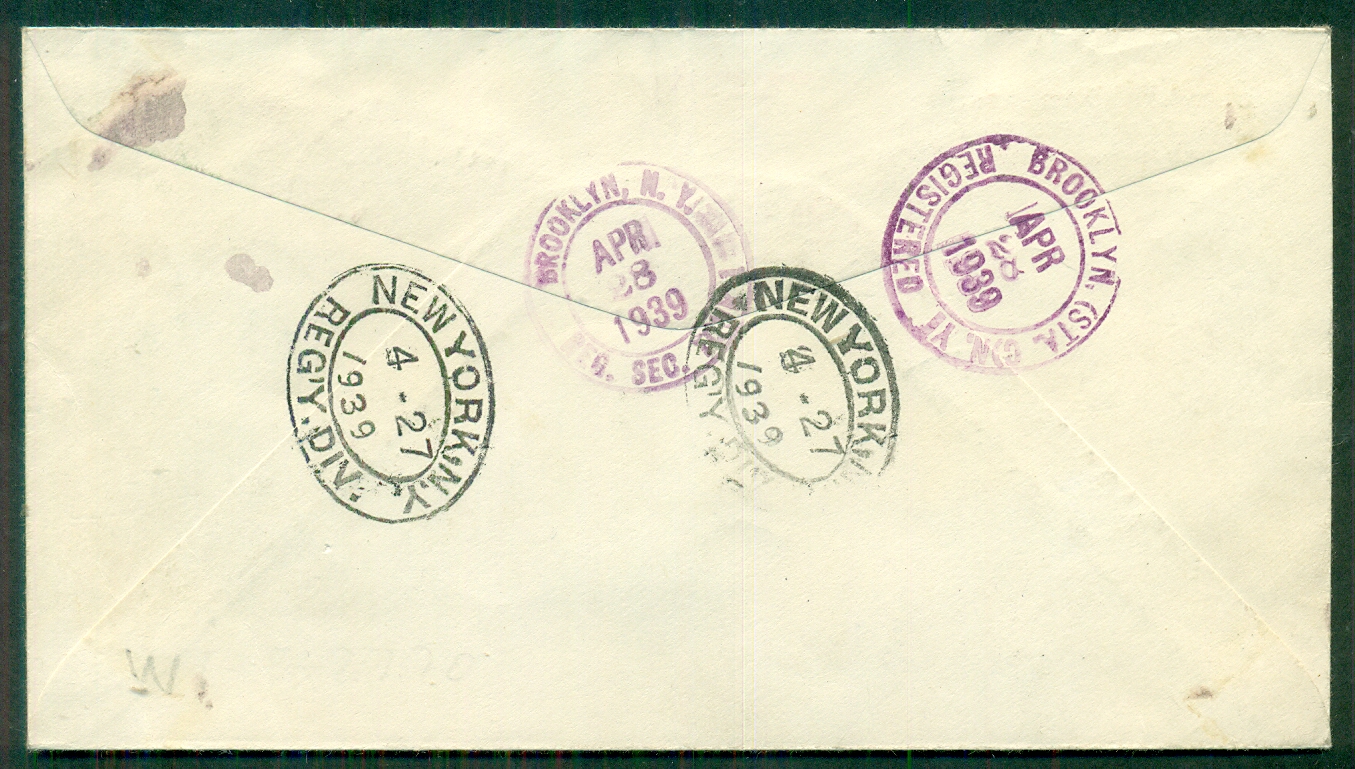 1939, Complete first set as originally issued on regis. Cover to U.S. Tied Julianehaab, VF, $95.00 |