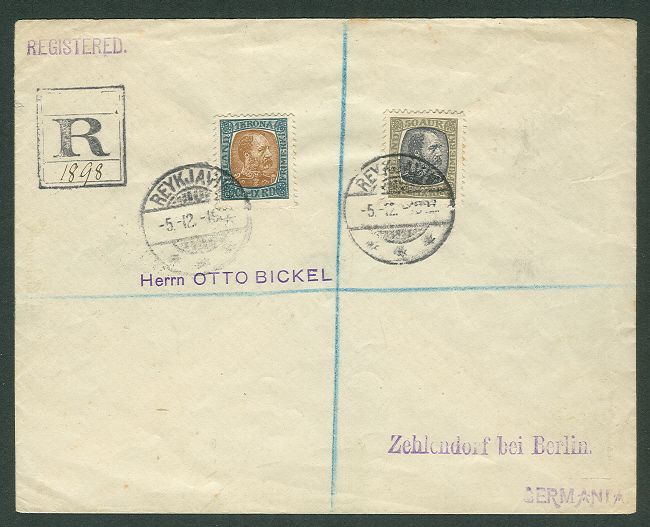 Reykjavik on cover to Germany, scarcer and VF, $240.00 |