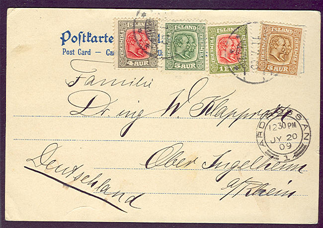 1908, 10aur tied on postcard to Germany with blue courier handstamp, Isafjordur scene reverse, VF, $55.00 |