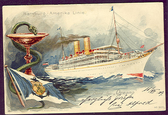 on HAPAG postcard to Germany w/very scarce ARDROSSAN transit cancel on
