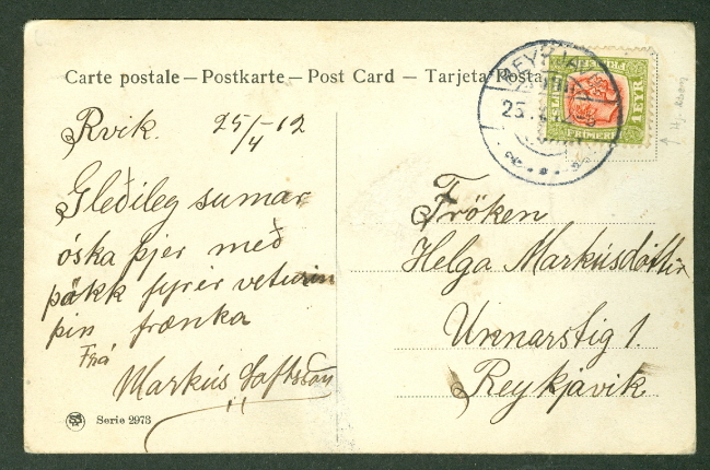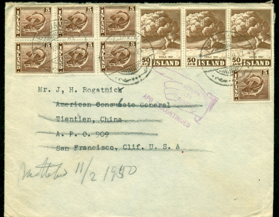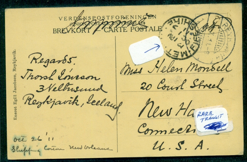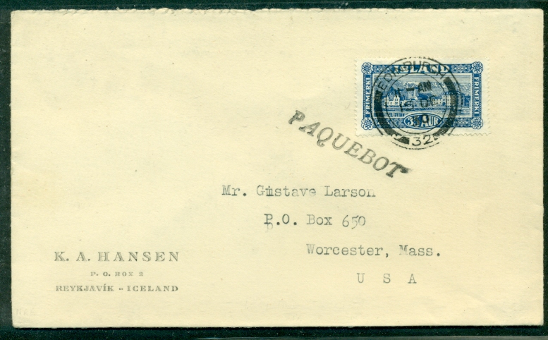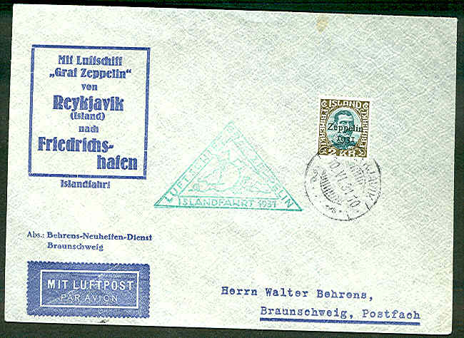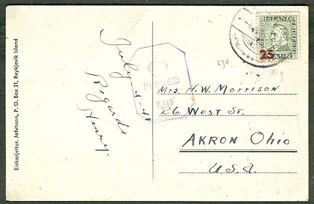 3aur tied Reykjavik to Germany, message reverse, VF, $425.00 |