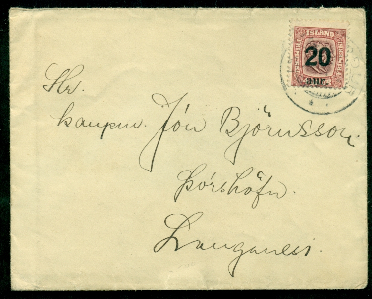 20aur Ovpt on 40aur Two Kings tied Isafjordur, VF, $75.00 |