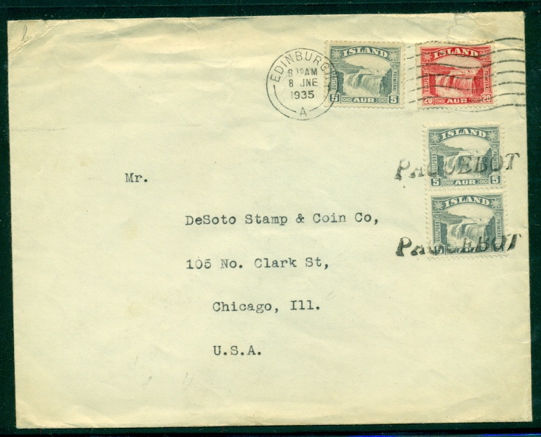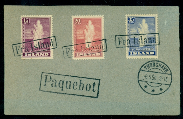 Geysir stamps all tied by boxed FRA ISLAND w/boxed PAQUEBOT and