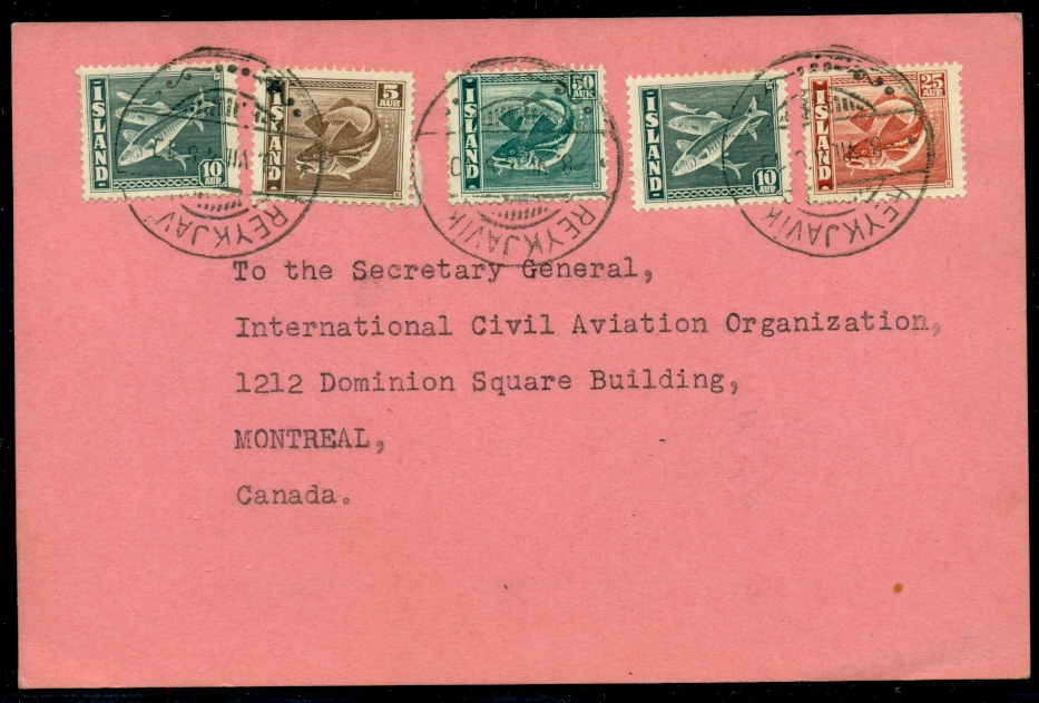 Multi-franked Fish stamp (5 diff values) tied Reykjavik on card to