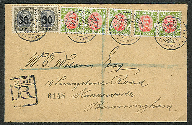 tied Reykjavik on registered cover to England, Edinburgh arrival