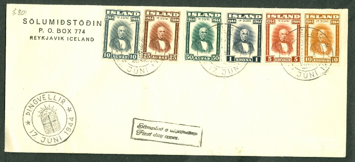 1941, Sturluson set (237-9) FDC, VF, $40.00 |