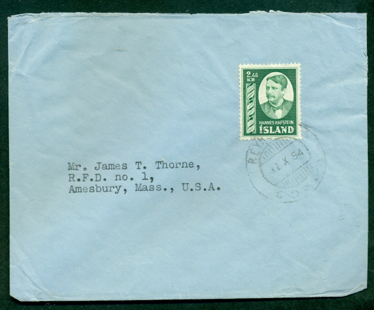 Hafstein (Scott 285) SINGLE USE on cover to U.S., quite elusive and