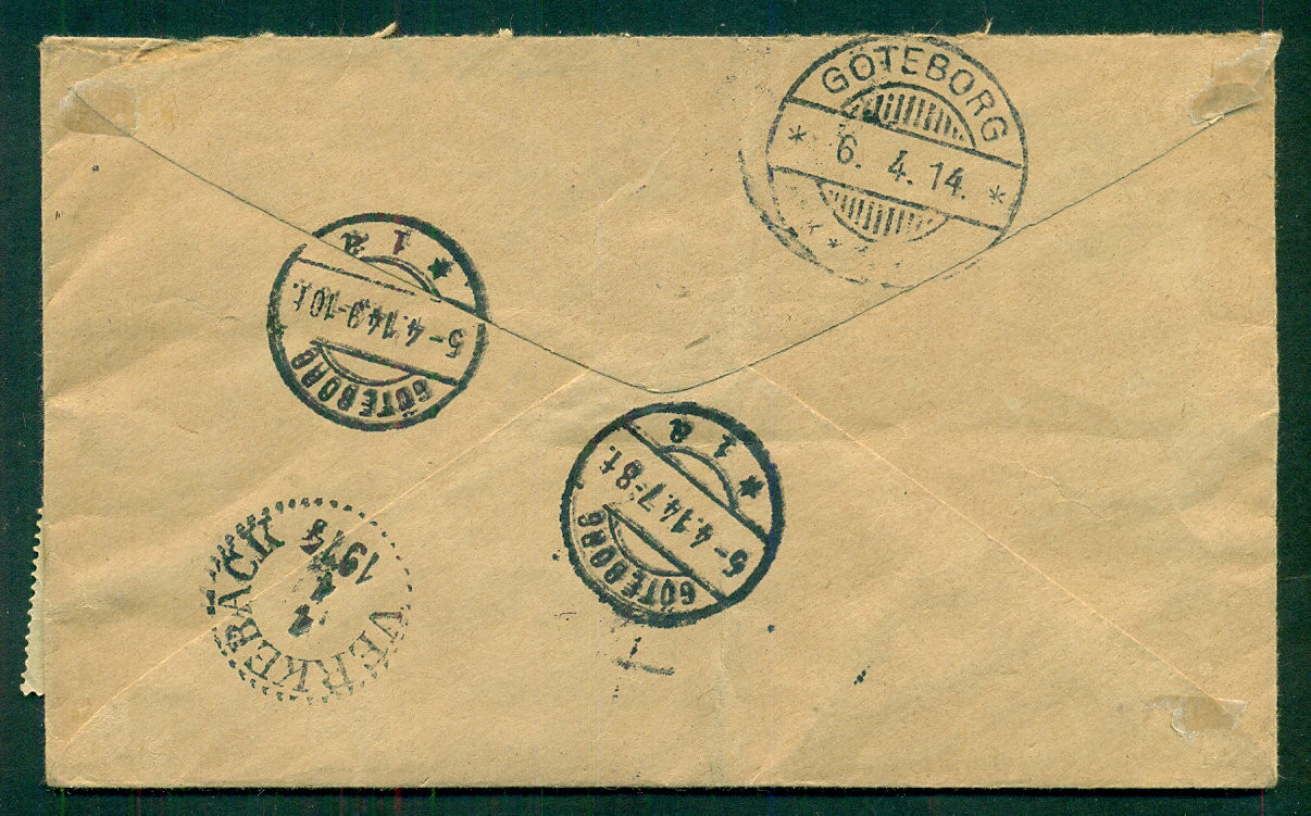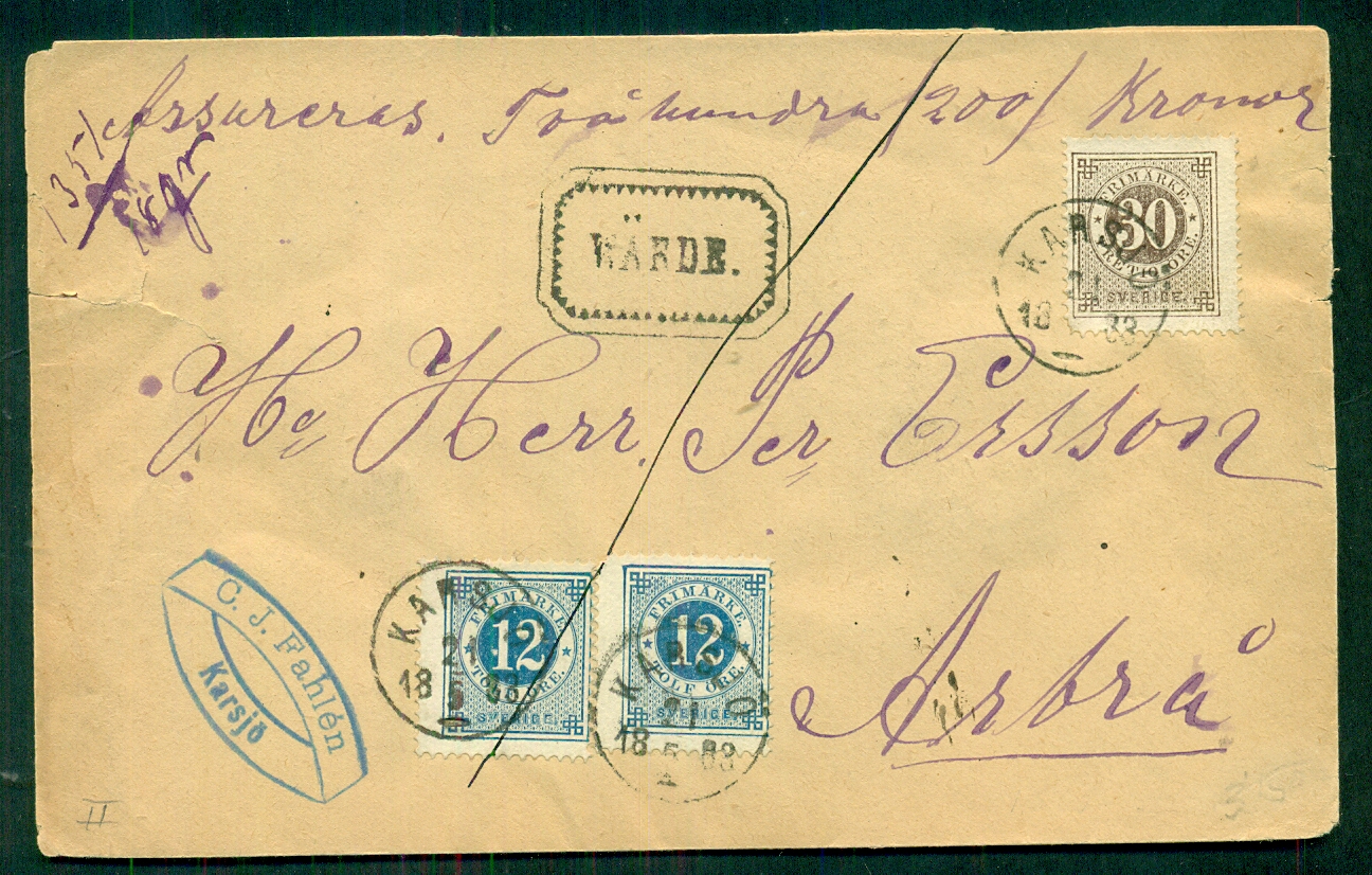 411D | 1892, 30ore Ringtype tied on registered cover to Stockholm, VF, $40.00 | |