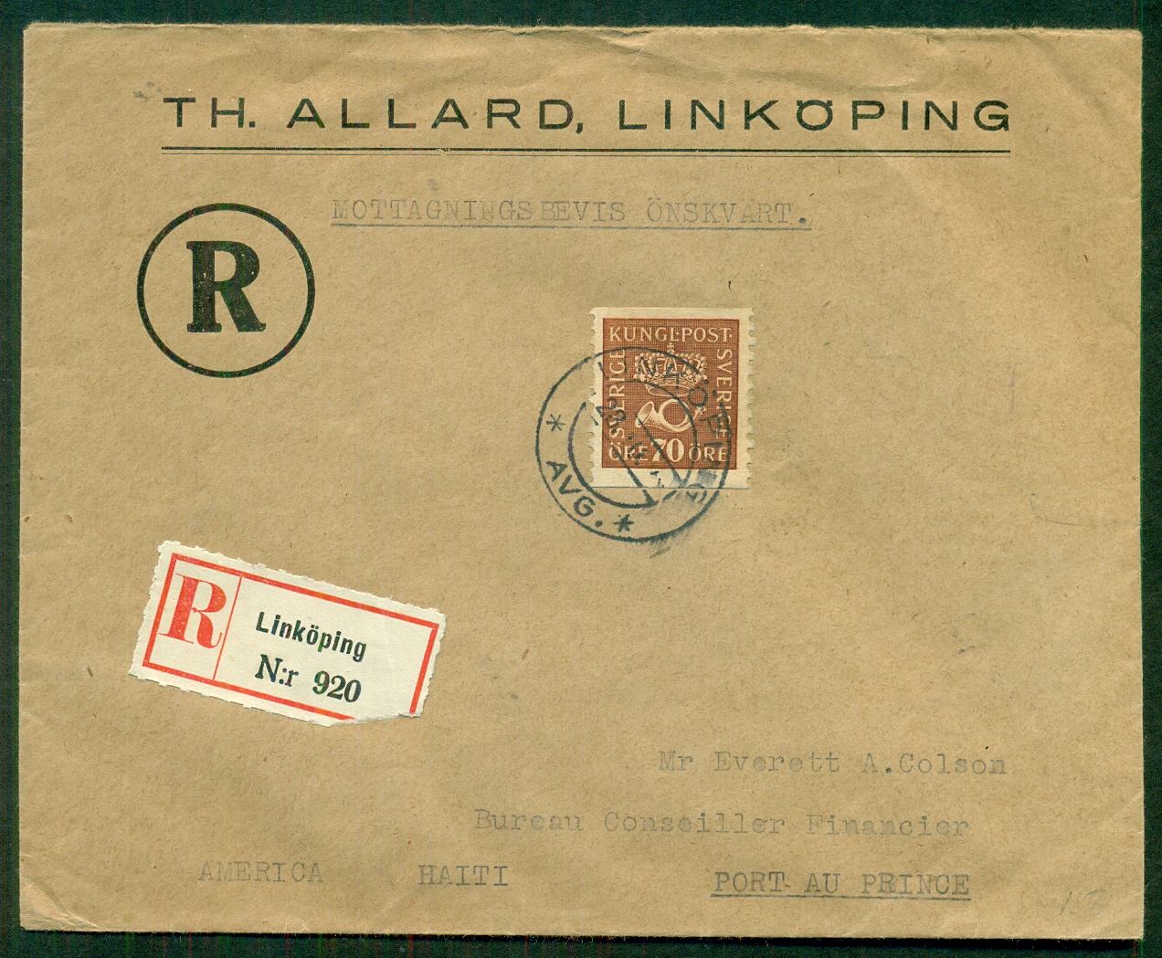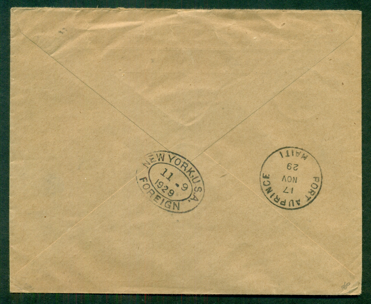 | 414J | 1929, Regis. Single franked cover to HAITA, rare (R5) destination and VF, signed Pollak, $120.00 | ||