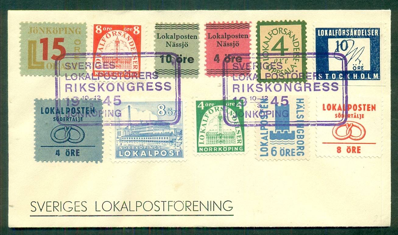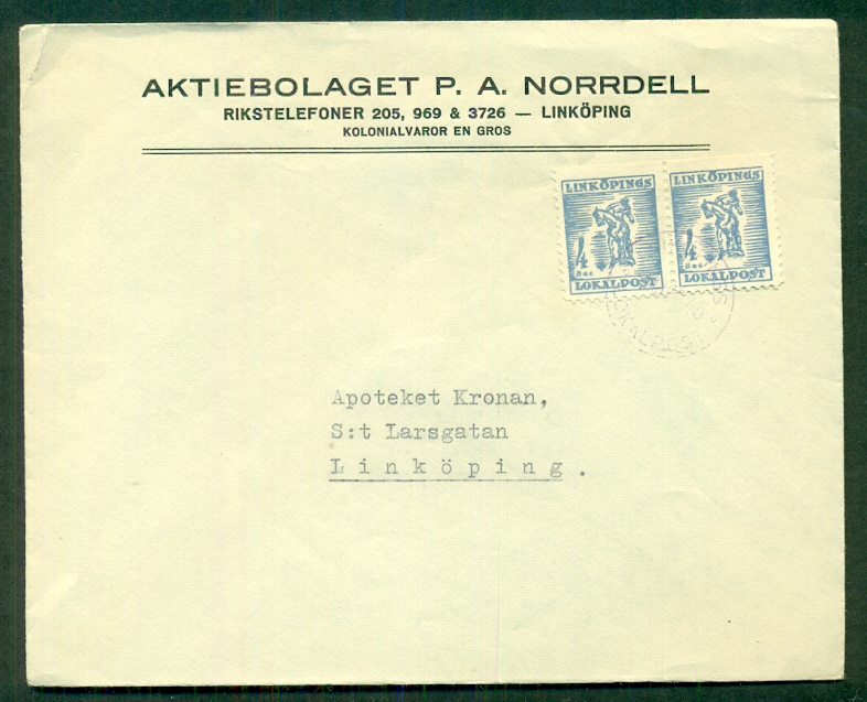 415KB | 1945, Sweden Locals, 4ore Linkopings pair tied on pretty cover, VF, $25.00 | |
