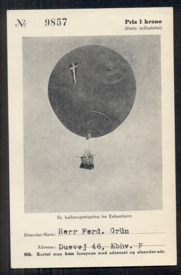 | 415KP | 1948, Sweden BALLOON – POST Official card to Denmark, VF, $24.00 | ||