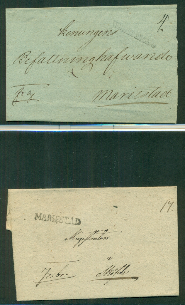 410 | Stampless cover collection, 18 different, 1830’s – 50’s, including straight line, circular and boxed cancels with better Eskilstuna and Thorshalla, VF, $270.00 Click here for more photos | |