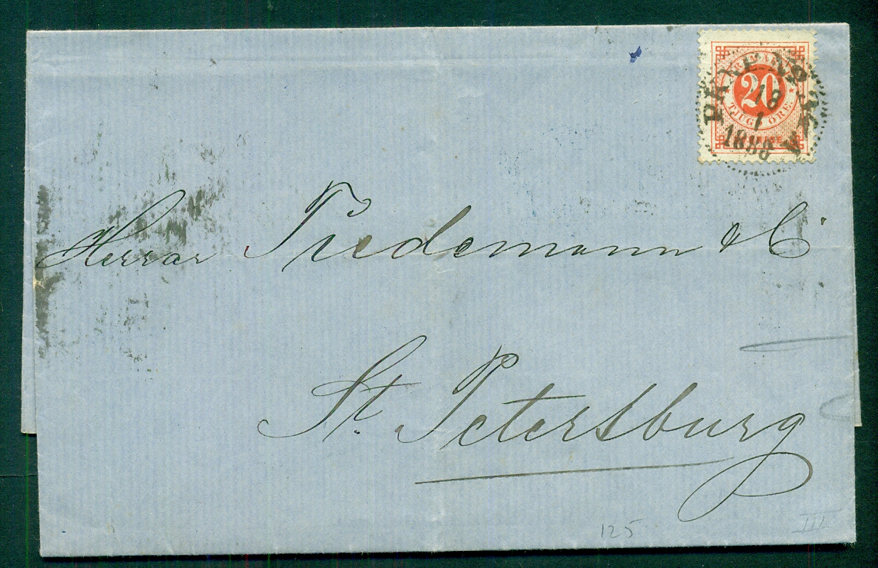 | 410Y | 1874, 24ore single franking tied Goteborg on cover to Germany, VF, $100.00 | ||