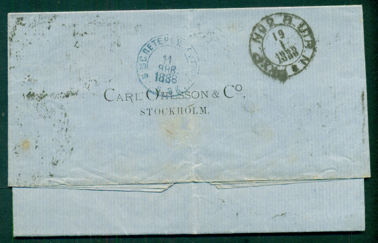 | 411AM | 1888 20ore single franking tied by railroad cancel to RUSSIA, VF, $65.00 | ||