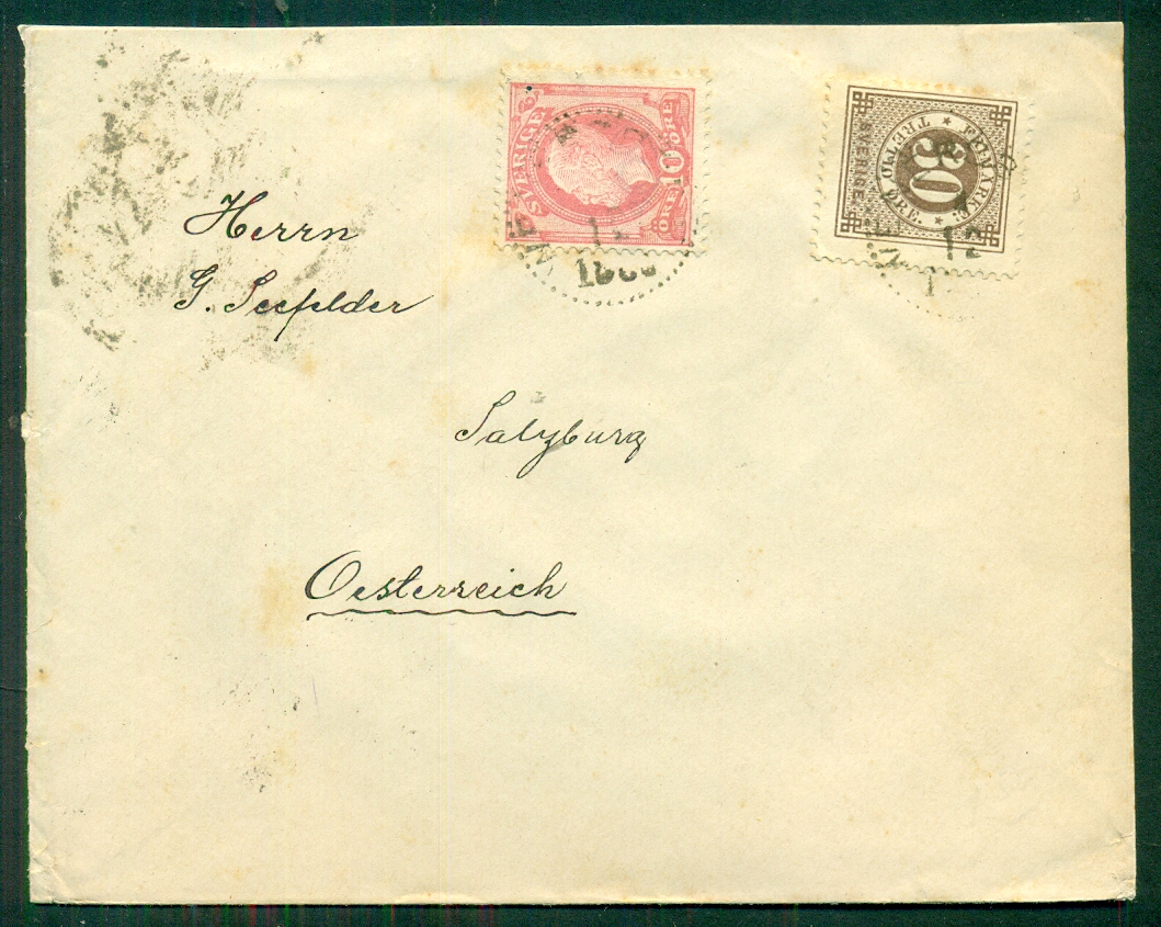 411AN | 1888, Mixed issue Double rate franking to AUSTRIA, unusual, VF, $200.00 | |
