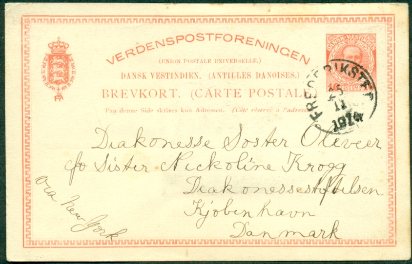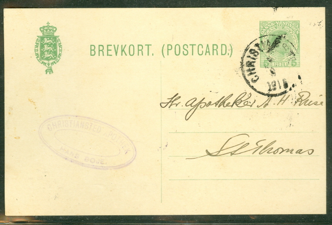 CARD, used from Christiansted 1911, message reverse, Facit $92.00, $47.00 |