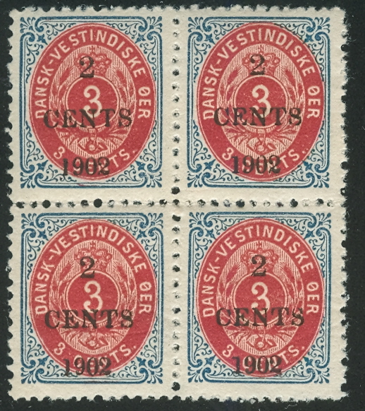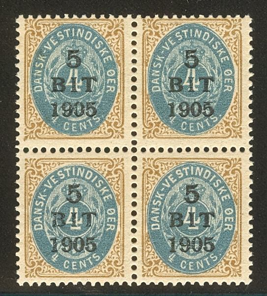 25, 8¢ on 10¢, Block of 4 showing E in VEST variety (pos. 63), og, NH, VF, Facit $240.00, $95.00 |