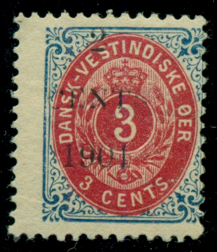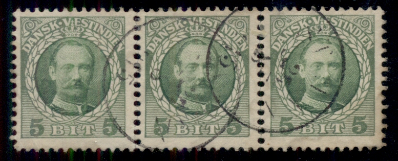Strip of 4 tied Frederiksted on small piece, VF, Facit for singles $285.00,