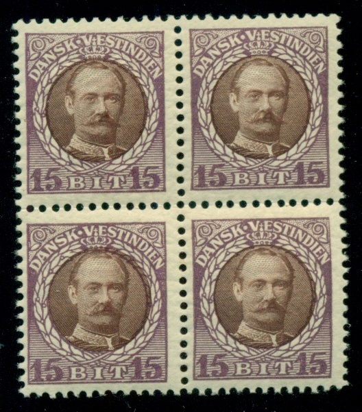 45v (43v) 15bit Fred VIII, Block of 4 with INVERTED WMK, og, NH, VF, scarce, Facit $350.00, $200.00 |