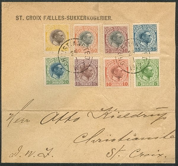 Chr. X set used on reduced 1917 cover and tied Christiansted, very scarce