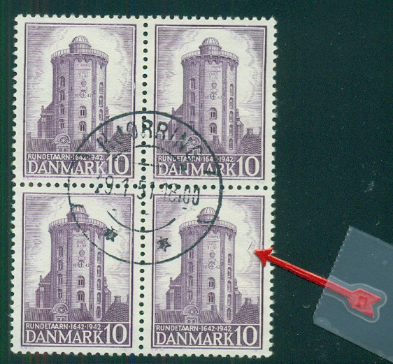 91DT | 303v (327v) 40ore blue, Block showing “Double Entry on Ferry Rail” at LR, NH, VF, Facit $60.00, $30.00 | ||