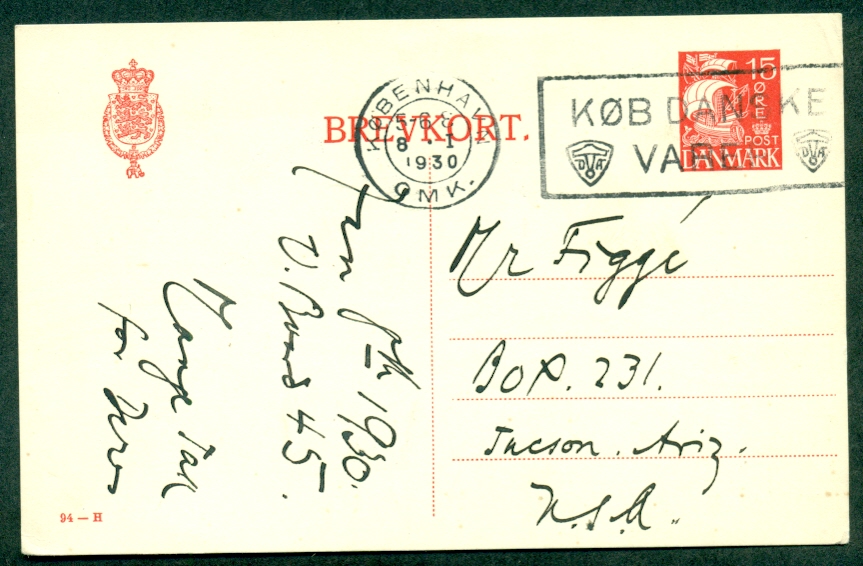 10ore, used to GERMANY with photo ad reverse, VF, $15.00 |