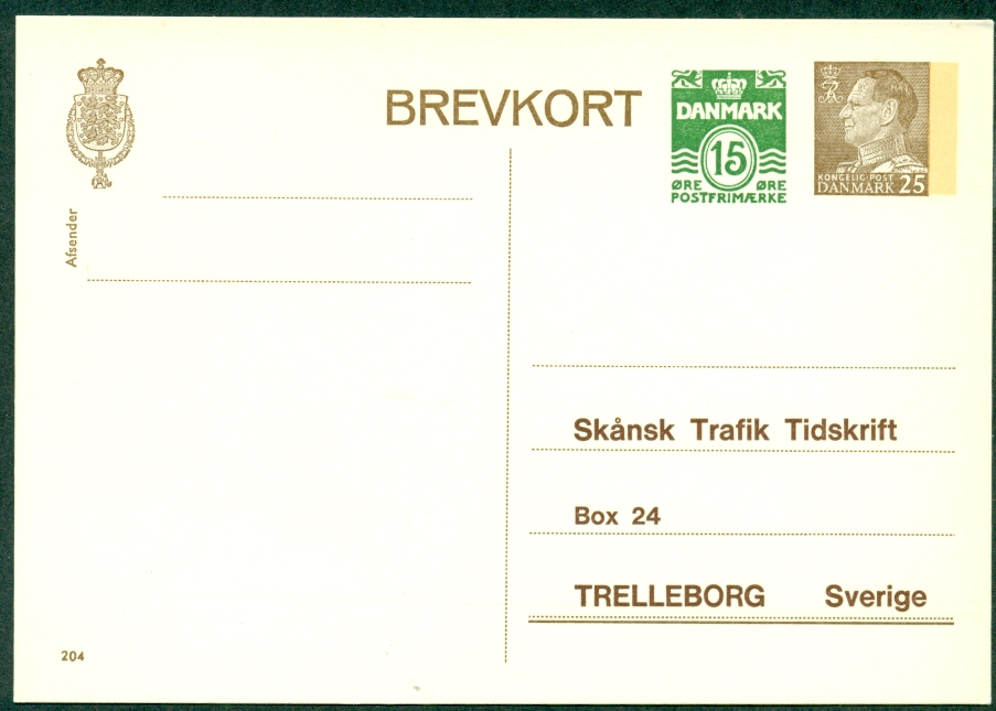 25ore, #205, 32 1/2mm Brevkort, used, scarce, VF, $95.00 |