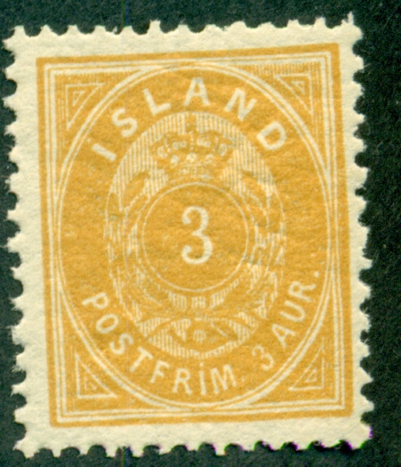 7 (7) 16sk yellow, used w/Reykjacik cancel, couple blunted perfs and an absolute speck of a thin, scarce stamp, Scott $650.00, $150.00 |