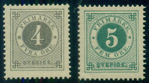 19,20, 5ore & 6ore, p. 14, fresh og, LH, both strong color and Fine, Scott $800.00, $175.00 |
