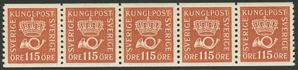 brown, Coil Strip of 5, og, NH, VF, Facit $165.00, $75.00 |